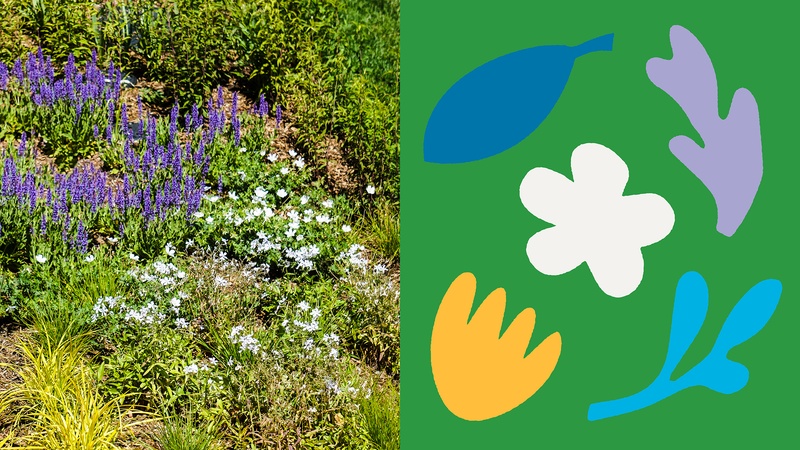 The graphic system developed for the park abstracts natural foliage forms into playful cut-paper-style shapes. The brand color palette changes with every season, and the whole system is based on the deliberately lo-fi typeface Chelsea Market.
