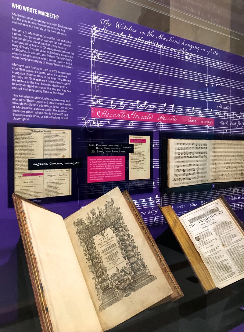Digital interactive kiosks are also on view, one of which allows viewers to digitally explore the entire famous First Folio printed in 1623, over 900 pages in length.