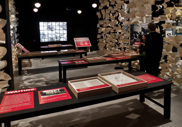 According to the museum’s blog, visitors have been generous in their praise for the design, even referring to it as “brilliant”. The Wall Street Journal’s review of the project said: This wrenching and elegant exhibition tells its story, of both rescue and the impediments to rescue, almost as much through design (by C&G Partners) as content. It is constructed as a sort of maze with walls of paper. Exhibits are displayed not in conventional vitrines, but on slabs resembling tables (evoking endless visits to U.S. consulates) or (closed) doors. Color, too, is used effectively, with text panels in red, for instance, denoting high danger and those in black symbolizing the cutoff of avenues of escape once World War II began. Read on for a full illustrated project description.