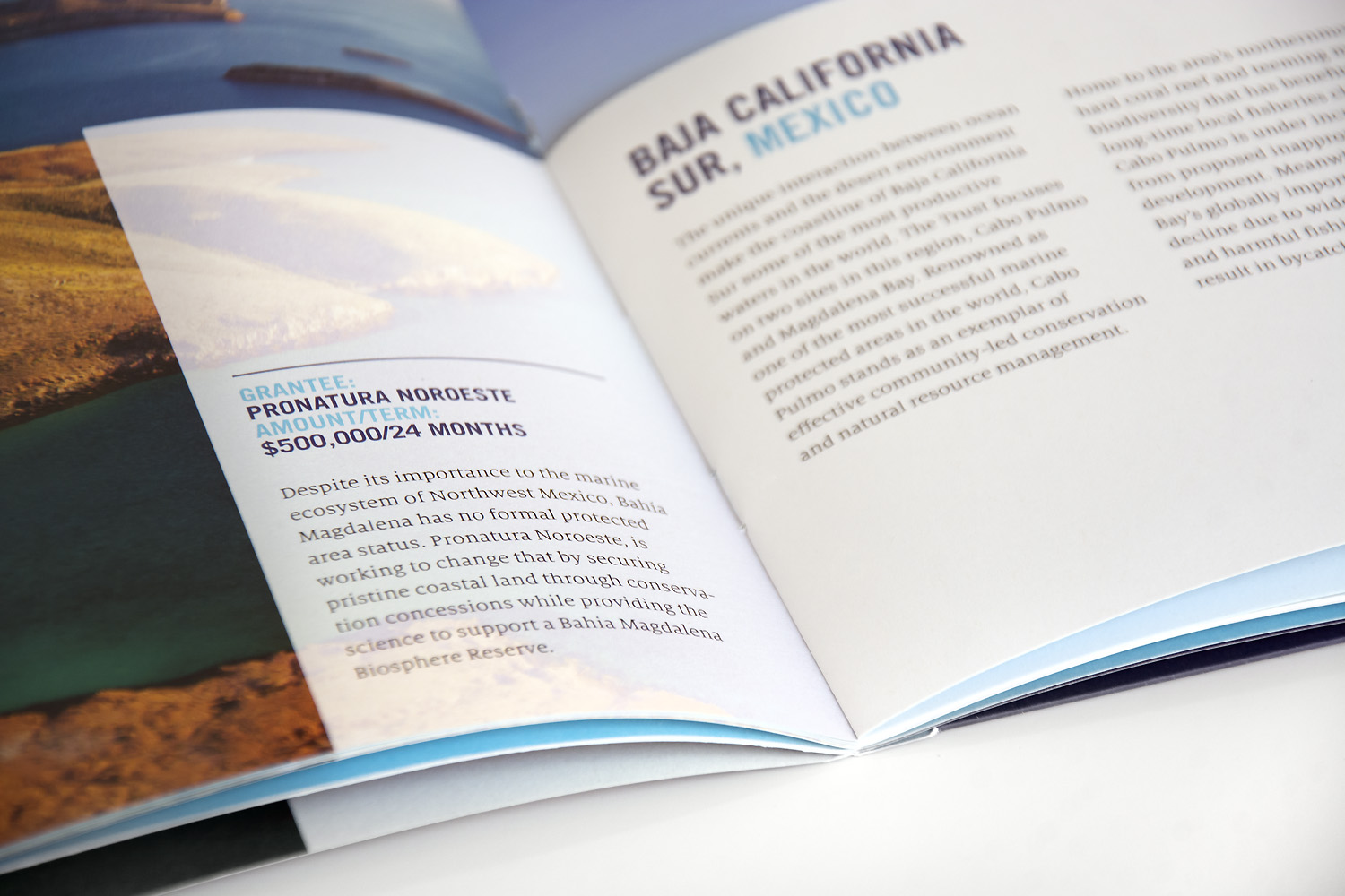 The first in a series of program-specific publications, the Conservation brochure highlights the Trust’s Conservation Program, working to resolve environmental threats in ways that ensure the well-being of local communities while sustaining natural resources and protecting biodiversity. This is achieved by collaborating with outstanding global and local organizations that share their mission.
